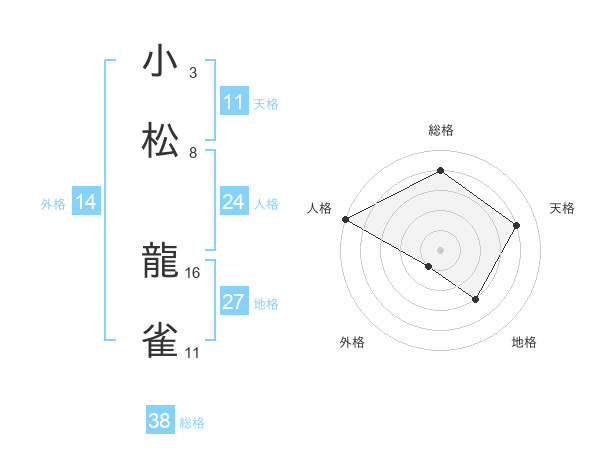 小松 龍雀さんを姓名の画数から五運を鑑定