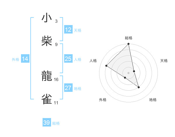 小柴 龍雀さんの総格は39画の5点!