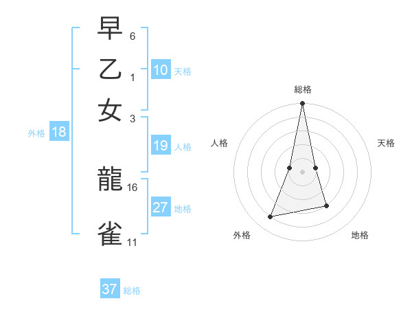 早乙女 龍雀さんを姓名の画数から五運を鑑定