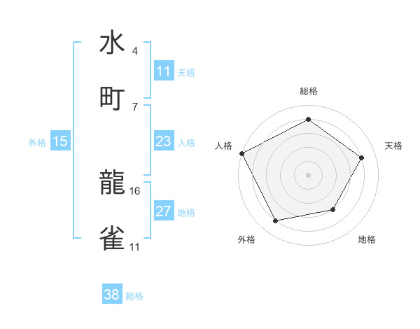 水町 龍雀さんを姓名の画数から五運を鑑定