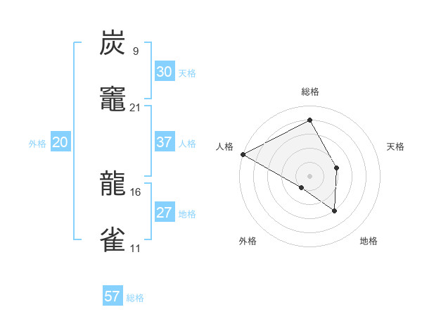 炭竈 龍雀さんの総格は57画の4点!