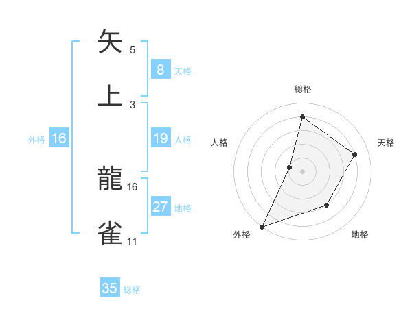 矢上 龍雀さんを姓名の画数から五運を鑑定