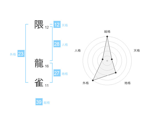 隈 龍雀さんの外格は23画の5点!