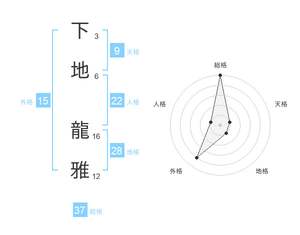下地 龍雅さんを姓名の画数から五運を鑑定