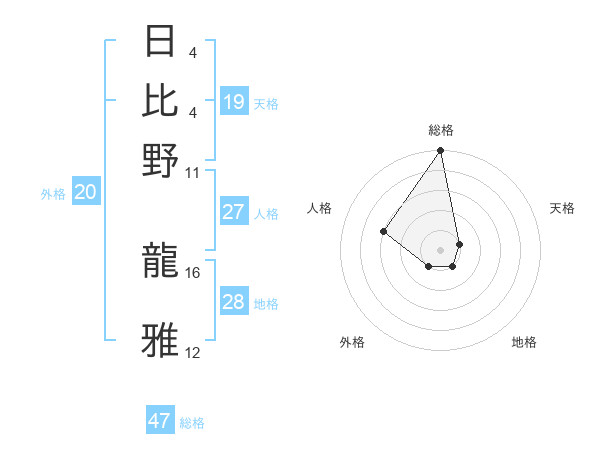 日比野 龍雅さんを姓名の画数から五運を鑑定