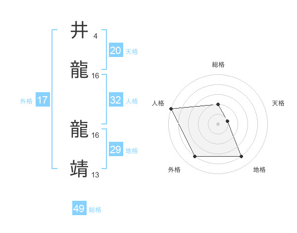 井龍 龍靖さんの外格は17画の4点!