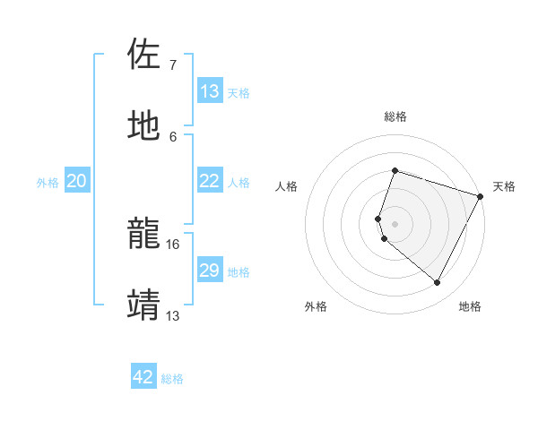 佐地 龍靖さんの総格は42画の3点!