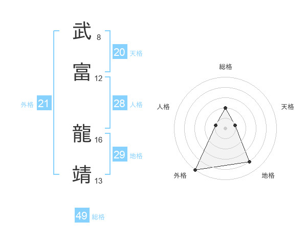 武富 龍靖さんの総格は49画の2点!
