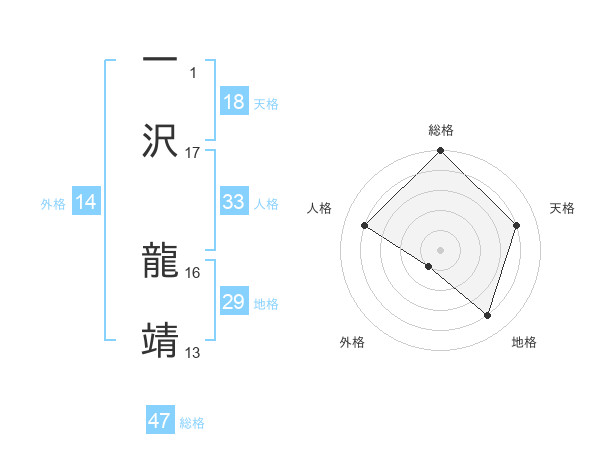 一沢 龍靖さんを姓名の画数から五運を鑑定