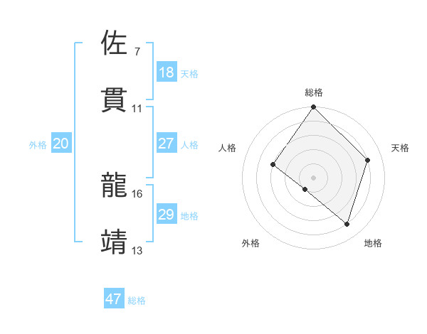 佐貫 龍靖さんの総格は47画の5点!
