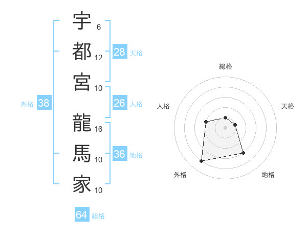 宇都宮 龍馬家さんの総格は64画の1点