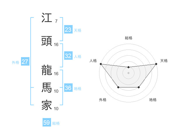 江頭 龍馬家さんを姓名の画数から五運を鑑定