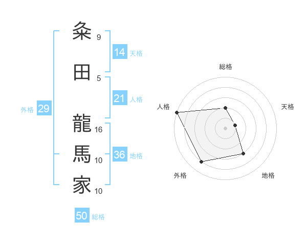 粂田 龍馬家さんを姓名の画数から五運を鑑定