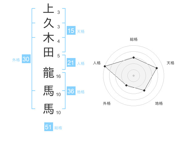 上久木田 龍馬馬さんの総格は51画の3点!