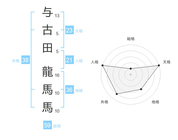 与古田 龍馬馬さんを姓名の画数から五運を鑑定