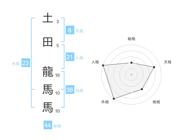 土田 龍馬馬さんを姓名の画数から五運を鑑定