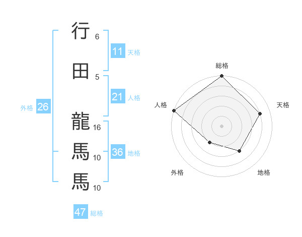 行田 龍馬馬さんを姓名の画数から五運を鑑定