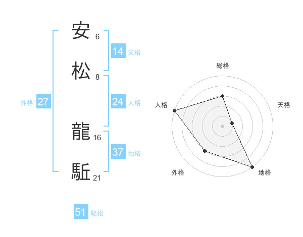 安松 龍駈さんの総格は51画の3点!