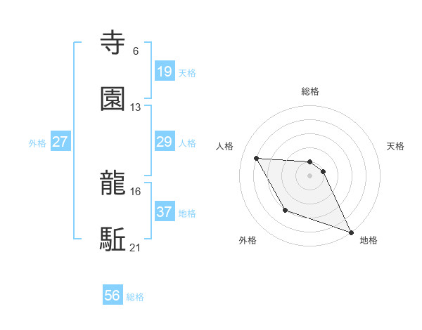 寺園 龍駈さんを姓名の画数から五運を鑑定