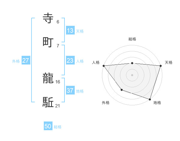 寺町 龍駈さんの総格は50画の2点!