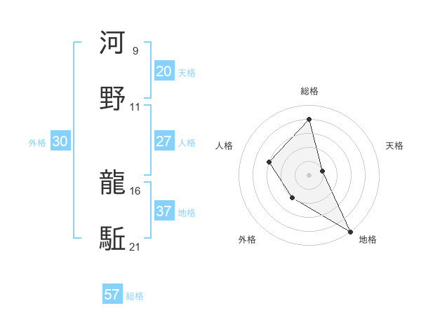 河野 龍駈さんの総格は57画の4点!