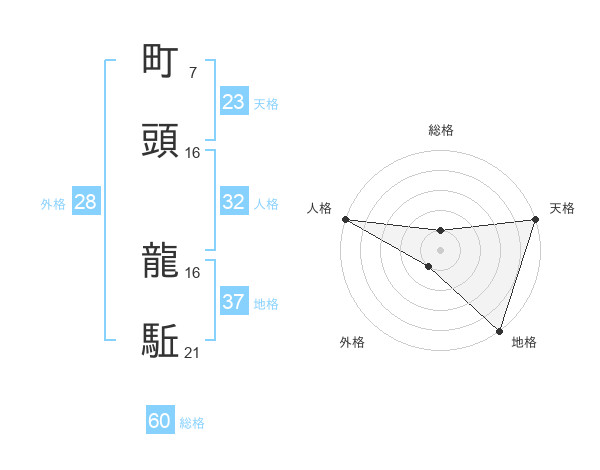 町頭 龍駈さんの総格は60画の1点!