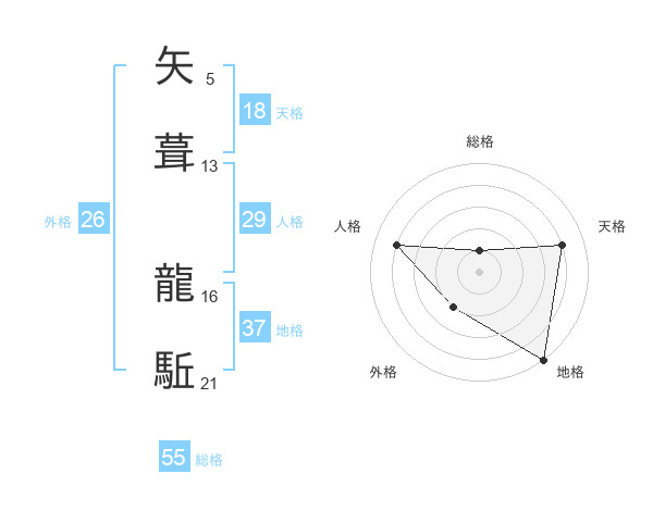 矢葺 龍駈さんの総格は55画の1点!