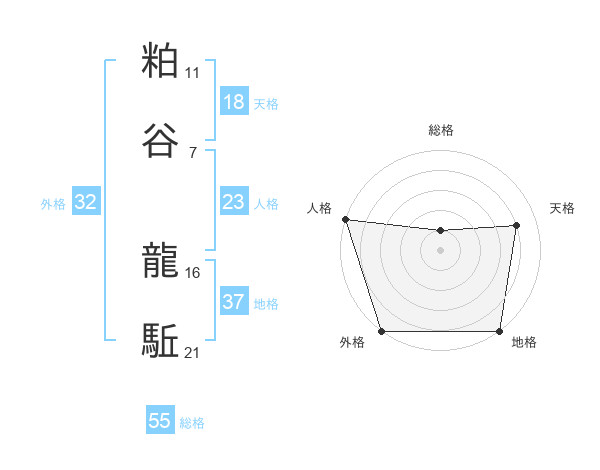 粕谷 龍駈さんを姓名の画数から五運を鑑定