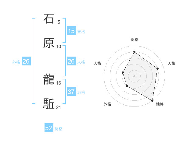 石原 龍駈さんを姓名の画数から五運を鑑定