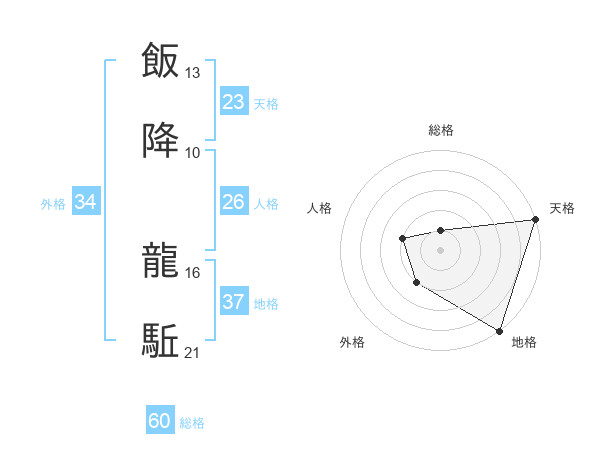 飯降 龍駈さんを姓名の画数から五運を鑑定