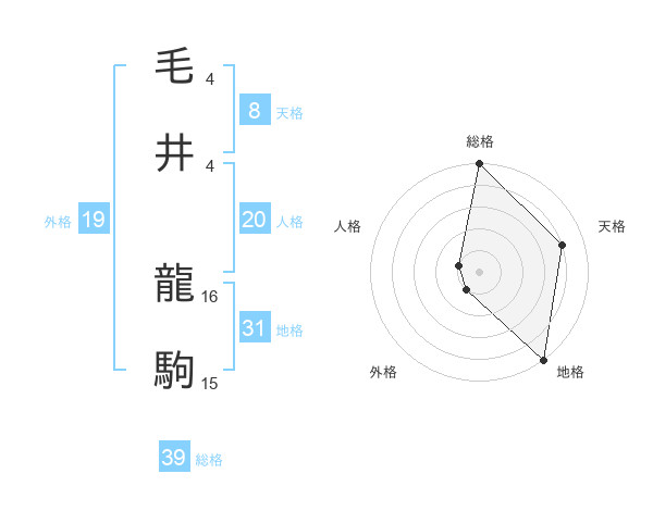 毛井 龍駒さんを姓名の画数から五運を鑑定