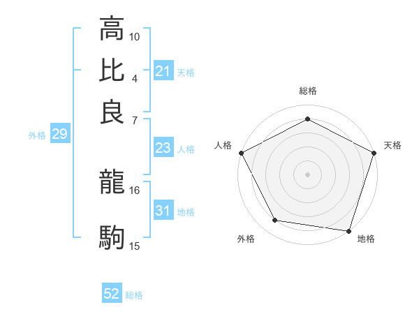 高比良 龍駒さんを姓名の画数から五運を鑑定