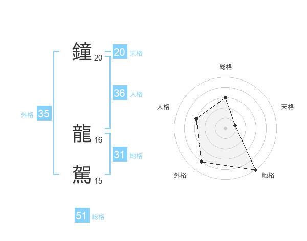 鐘 龍駕さんの総格は51画の3点!