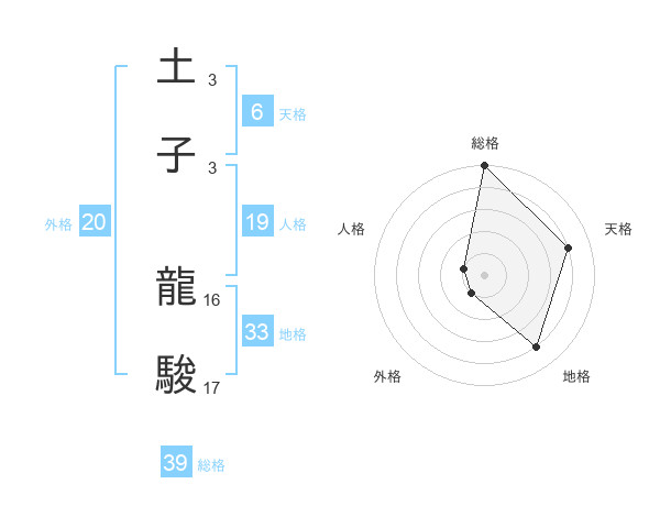 土子 龍駿さんの総格は39画の5点!