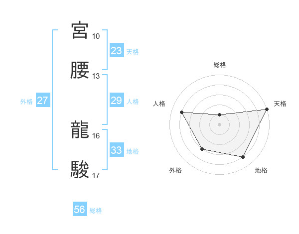 宮腰 龍駿さんを姓名の画数から五運を鑑定