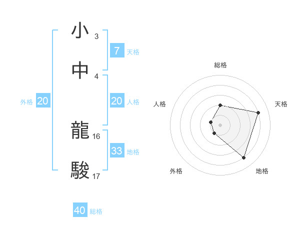 小中 龍駿さんを姓名の画数から五運を鑑定