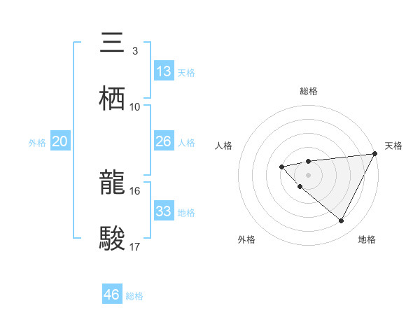三栖 龍駿さんを姓名の画数から五運を鑑定
