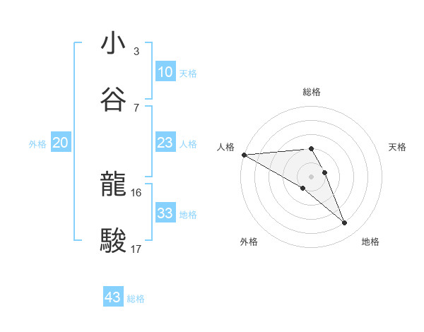 小谷 龍駿さんを姓名の画数から五運を鑑定