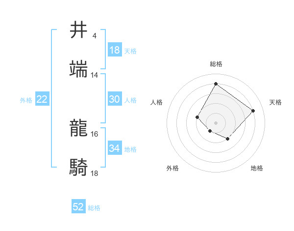 井端 龍騎さんを姓名の画数から五運を鑑定