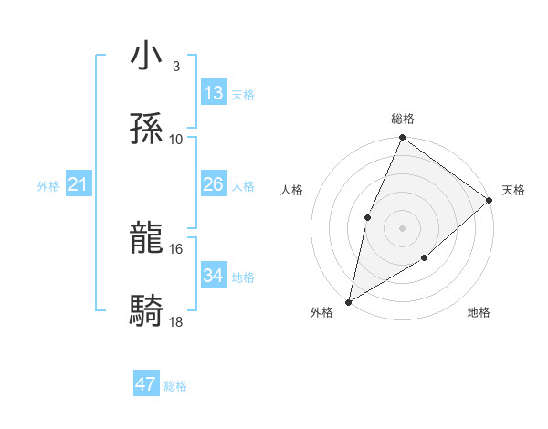 小孫 龍騎さんの総格は47画の5点!