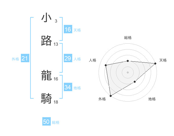 小路 龍騎さんの総格は50画の2点!