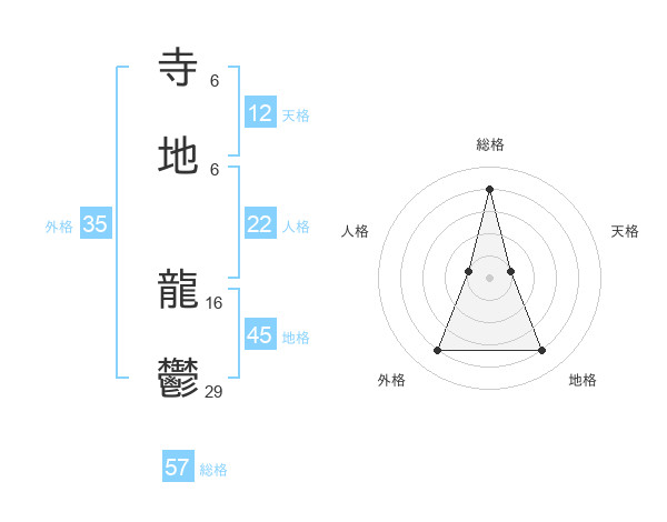 寺地 龍鬱さんの総格は57画の4点!