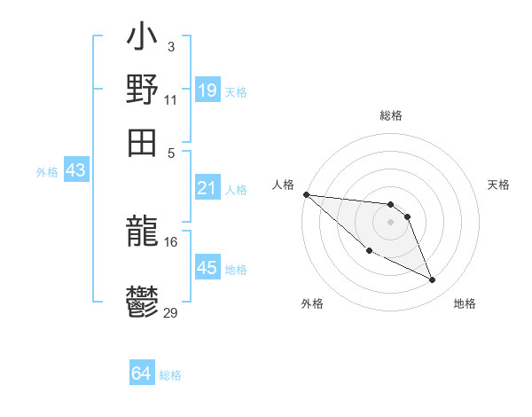 小野田 龍鬱さんを姓名の画数から五運を鑑定