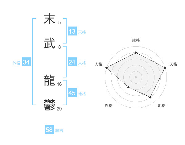 末武 龍鬱さんの総格は58画の4点!