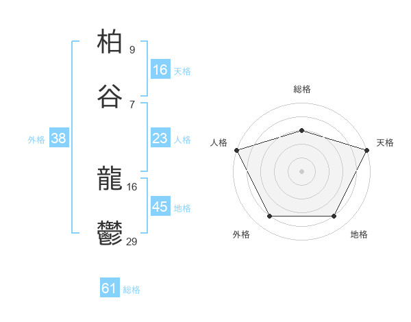 柏谷 龍鬱さんを姓名の画数から五運を鑑定