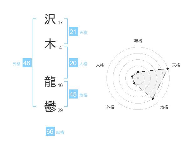 沢木 龍鬱さんを姓名の画数から五運を鑑定