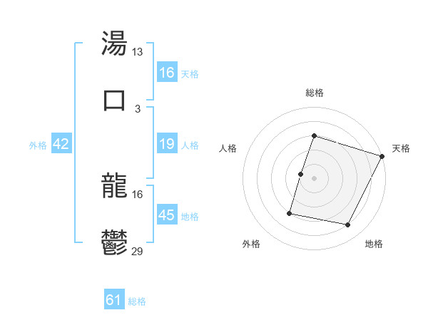 湯口 龍鬱さんの総格は61画の3点!