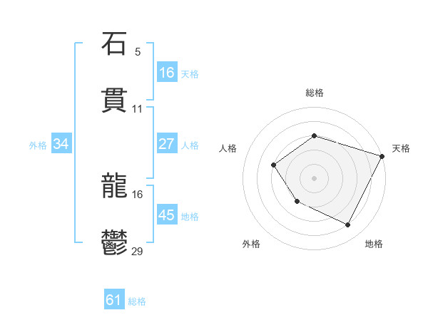 石貫 龍鬱さんの総格は61画の3点!