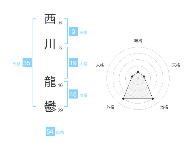 西川 龍鬱さんを姓名の画数から五運を鑑定