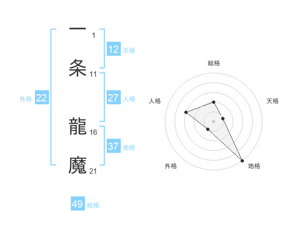 一条 龍魔さんの天格は12画の1点!